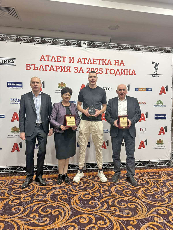 С почетен плакет бе награден и треньорът Димитър Карамфилов за неговата изключителна експертиза, отдаденост и ключова роля в подготовката на атлета.