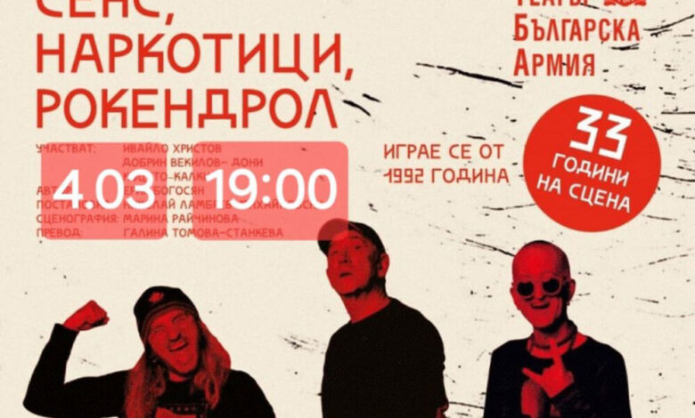Култовата постановка „Секс, наркотици, рокендрол“ ще се играе на 4 март от 19 ч. на сцената на ОДТ „Апостол Карамитев“ в Димитровград, съобщават от общината.