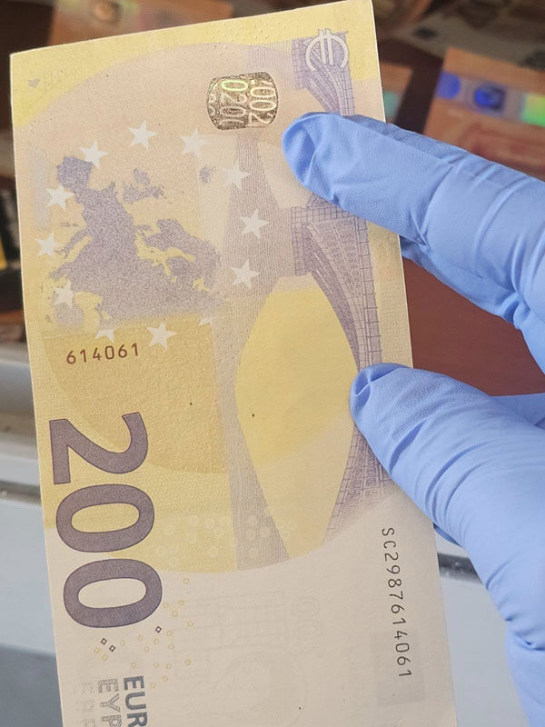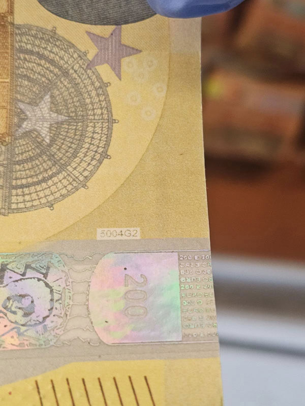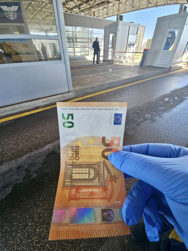 Във водача са открити 10 банкноти с номинал 50, 5 с номинал 200 евро, както и две 100-доларови банкноти.