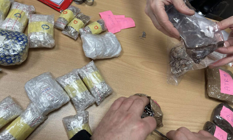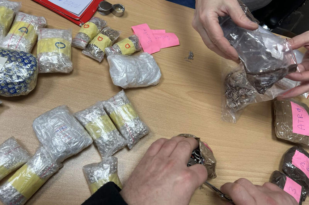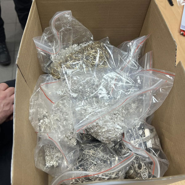Според направената експертиза от вещо лице, в една част от пакетите са установени 128 пръстена от 14-каратово злато с общо тегло 192 грама, а в друга част – 6206 грама употребявани сребърни изделия, проба 925 и 6794 грама сребърни гранули, проба 999.
