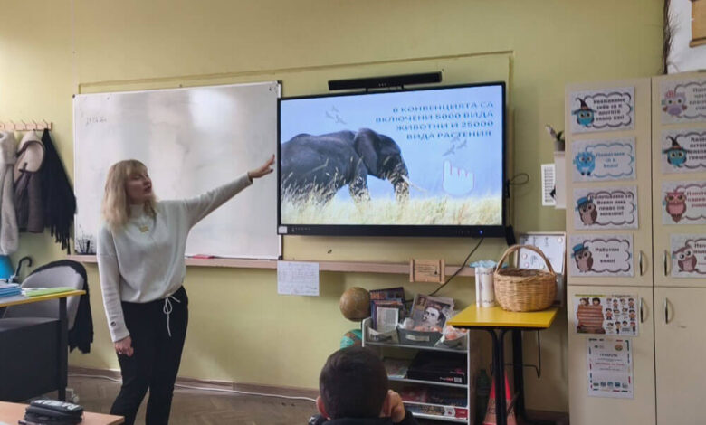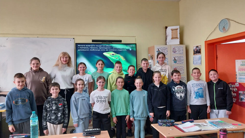 Експерт от еко инспекцията посети учениците и ги запозна с Конвенцията за международна търговия със застрашени видове от дивата флора и фауна, със сериозните заплахи за дивата природа – загубата и промяната на местообитанията, свръх експлоатацията, незаконния трафик.
