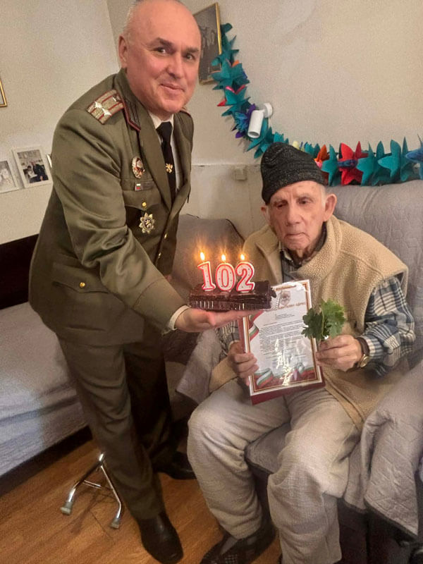 По този повод началникът на Военно окръжие – Хасково подполковник Петър Петков посети дома му и го изненада с празнична торта, поздравителен адрес и китка здравец – символ на здраве, дълголетие и благополучие.