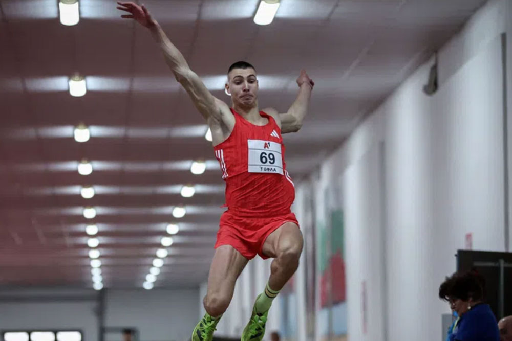 Божидар Саръбоюков от „Хеброс“ (Харманли) спечели националната титла в зала при мъжете в тройния скок с личен рекорд от 16.61 метра.