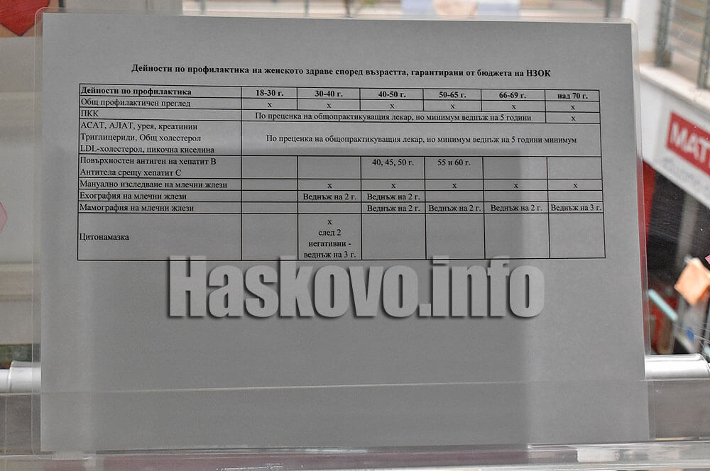 „Налице е тенденция, не само за жените, но и за всички осигурени лица – като че ли не знаят до край своите права. Веднъж годишно всяко здравноосигурено лице над 18-годишна възраст има право на профилактичен преглед. За целта той следва да посети своя личен лекар. При прегледа се извършва набор от изследвания и анкети и други наблюдения над здравето, в зависимост от възрастовата група и рисковите фактори, които са идентифицирани, като биха могли да бъдат назначени допълнителни изследвания. Глобалната цел на прегледа е да се извърши превенция на заболяванията, или ако има такива, те да бъдат открити в много ранен стадий, когато лечението е много по-бързо, по-евтино и с по-малко проблеми“, обясни директорът на РЗОК – Хасково Ирина Колева.