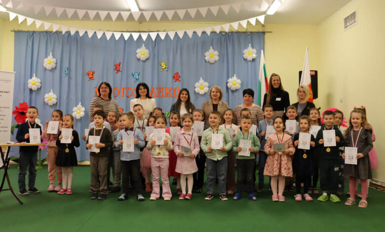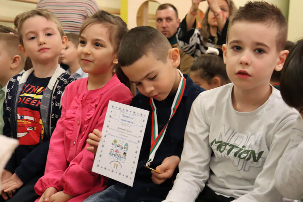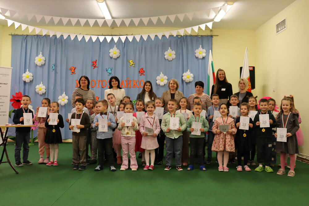 Тя и директорът на детската градина връчиха медалите на златните, сребърните и бронзовите медалисти от Националното състезание „Многознайко“.