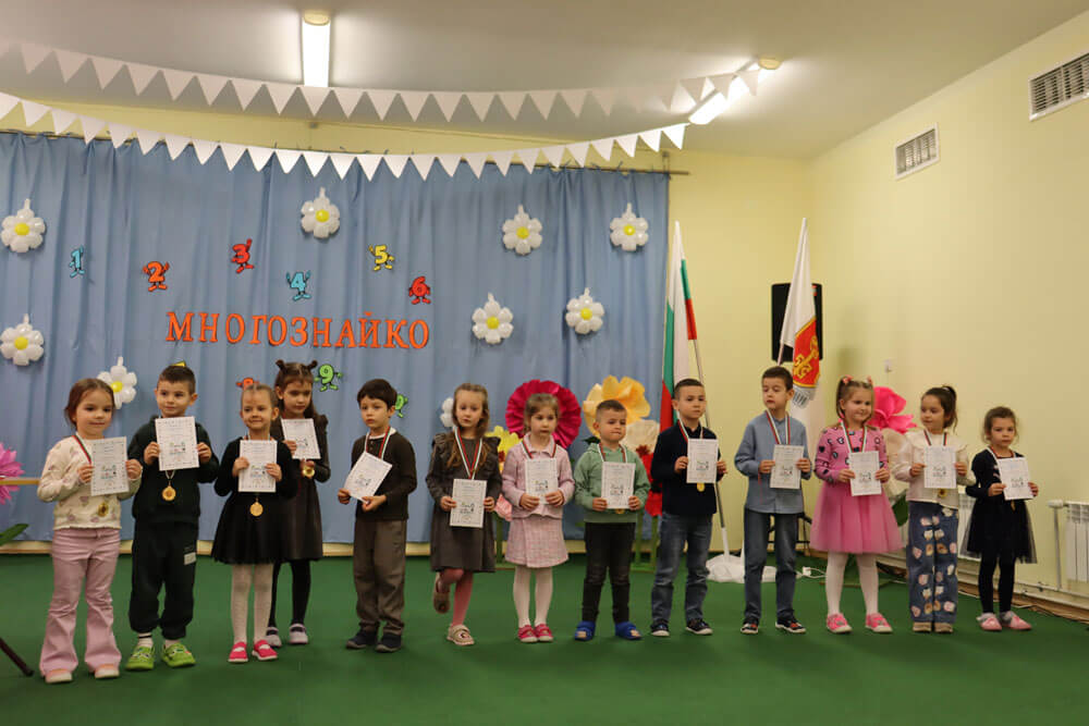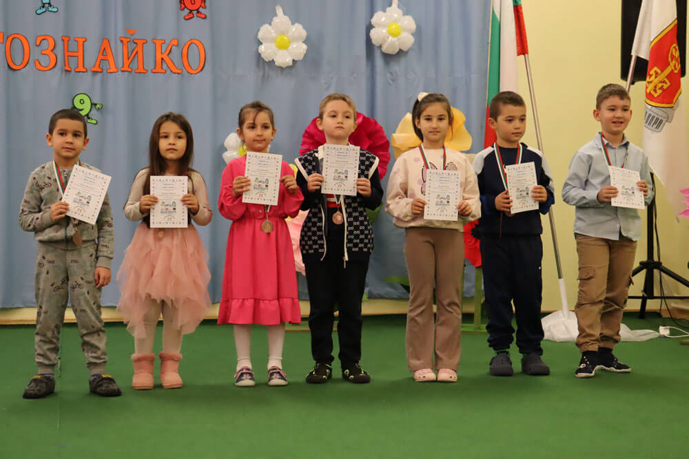 Общо 29 златни, сребърни и бронзови медала спечелиха със знания и упорит труд малките възпитаници на градината. Многознайковците са от предучилищните групи, а конкуренцията бе изключително сериозна, защото участваха стотици деца от най-големите градове в България.