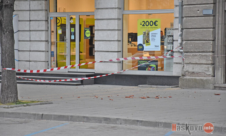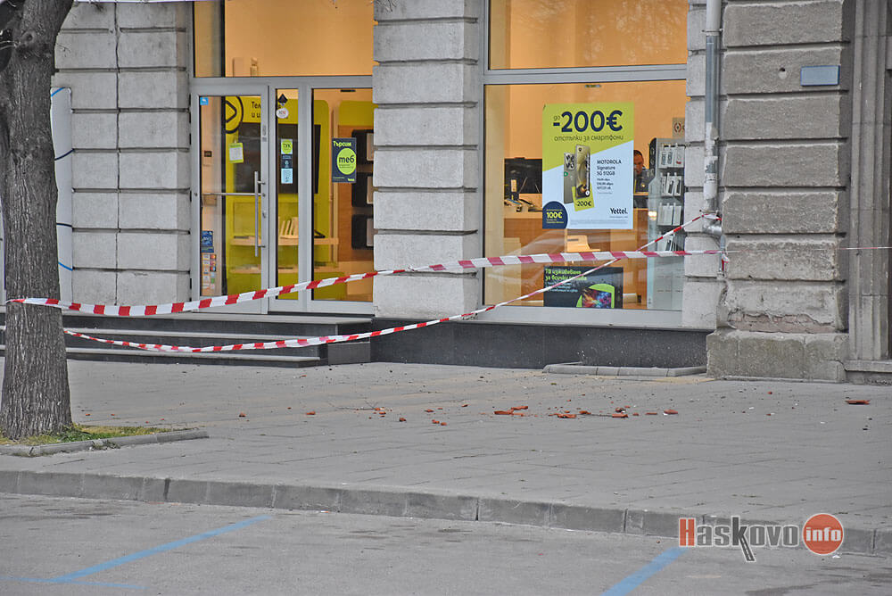 Оживен тротоар в централната част на булевард „Димитър Благоев“ в Димитровград е отцепен заради падащи отломки от фасадата на жилищен блок от времето на соца.