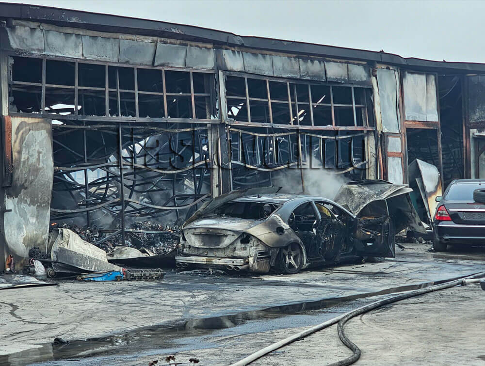 Няма пострадали хора. Изгорели са 50 автомобила, две халета, авточасти.