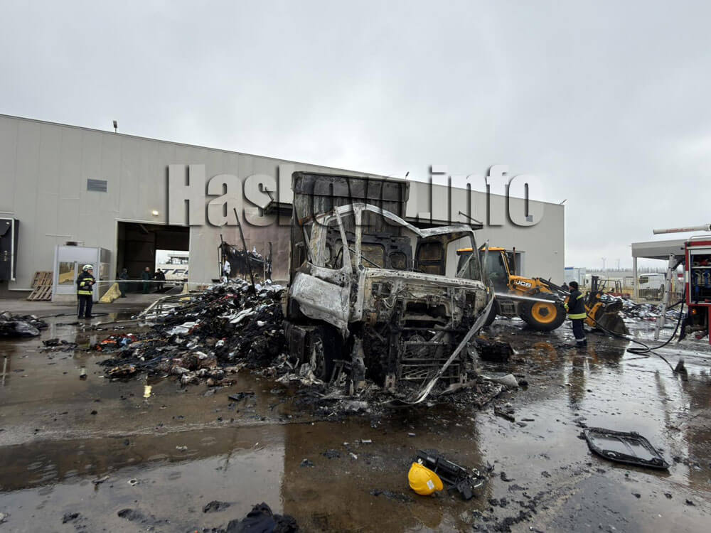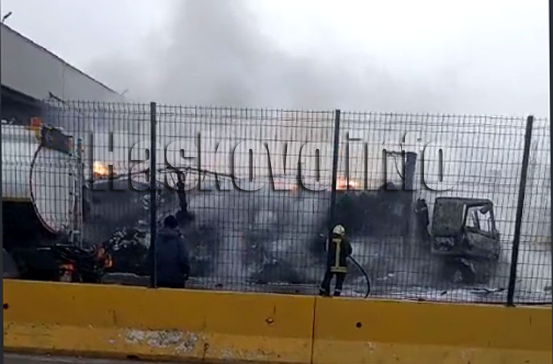 Предполага се, че искра е подпалила камиона, който е изгорял напълно. Сложителите на пункта са се опитали да гасят пламъците.