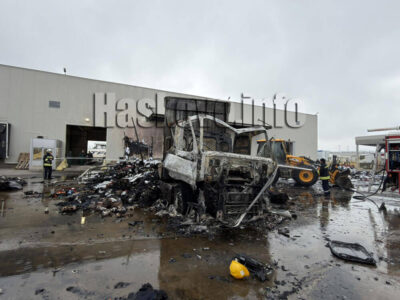 От пламъците се е запалил и камион в съседство, който обаче е загасен от пожарникарите, като щетите по него не са големи.