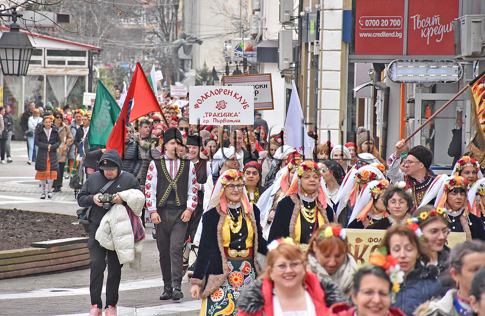 По традиция програмата започна с шествие на участниците от площад „Свобода“ до спортна зала „Дружба“, където ще се проведе фестивалът.