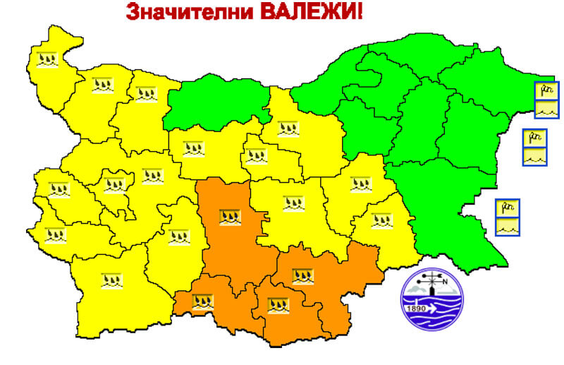За общините Тополовград и Симеоновград е обявен жълт код с очаквани валежи между 20 и 35 литра на квадратен метър.