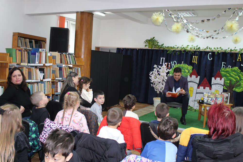 БиблиотекаИво Димов избра да прочете българските народни приказки „Как Хитър Петър научил мързеливия да работи“ и „Лъжливото овчарче“ и разговаря с малчуганите за поуките, които носят детските книжки, а децата с желание говориха за труда, уважението и добротата.