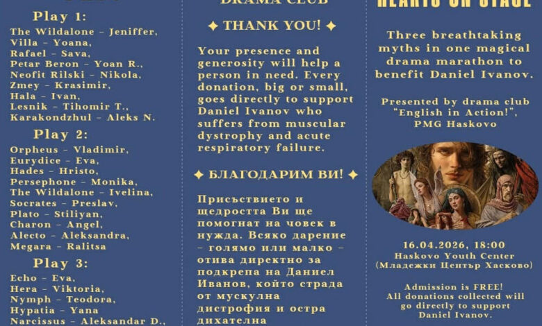 Благотворителен театрален маратон ще се проведе на 16 април от 18 часа в Младежки център – Хасково.
