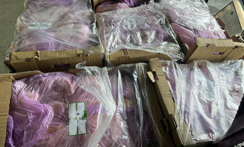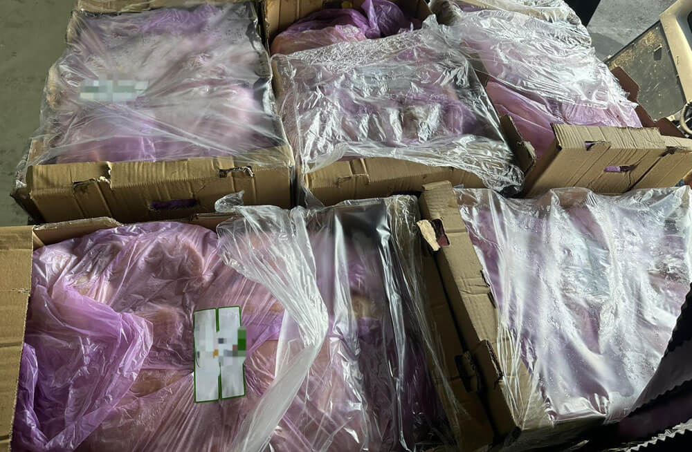 Стоката е била опакована в над 80 картонени кашона, всеки средно с около 18 кг. месо, завито с найлон. Продуктите са иззети и ще бъдат унищожени.