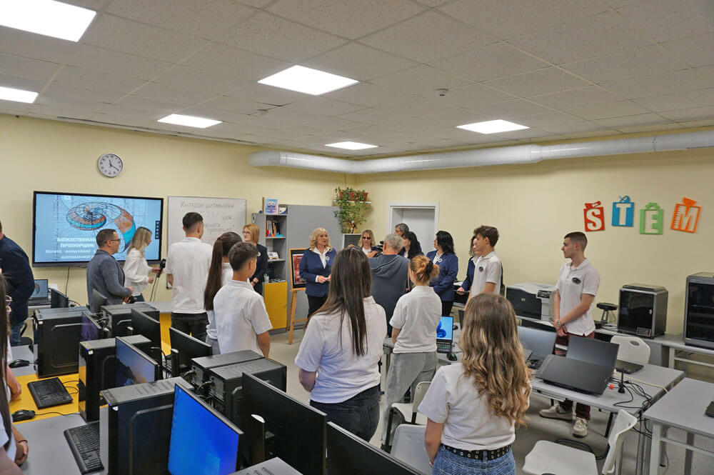 Учениците продължиха програмата с открити уроци и демонстрации, сред които „Божествената пропорция“ и изследване на уникалните свойства на водата. Те показаха как наученото в класната стая може да бъде приложено в реални ситуации чрез експерименти и работа с модерното оборудване в STEM центъра.