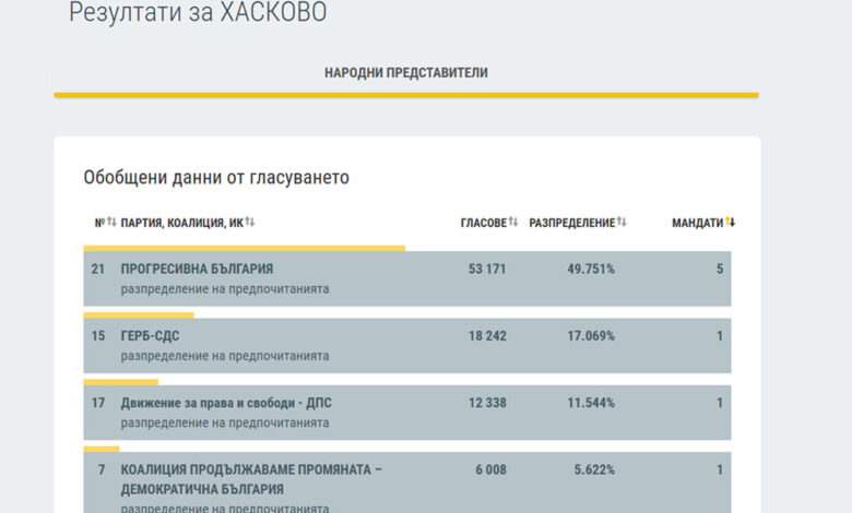 Петият мандат на „Прогресивна България“ ще бъде за сметка на ГЕРБ-СДС, които ще са само с един депутат. Водачът Делян Добрев е избран и от София и до 24 април трябва да заяви от коя листа желае да влезе в парламента. Ако той избере да не представлява Хасково, които вече е било обявено като намерение, от региона в парламента ще влезе рекордьорът по преференции в листата им Георги Станков.