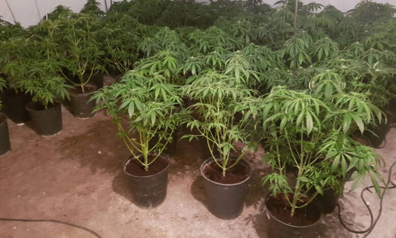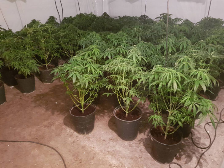 Иззети са и саксии, в които са отглеждани растения, препарати за подпомагане на растежа, машина за сушене на листната маса.
