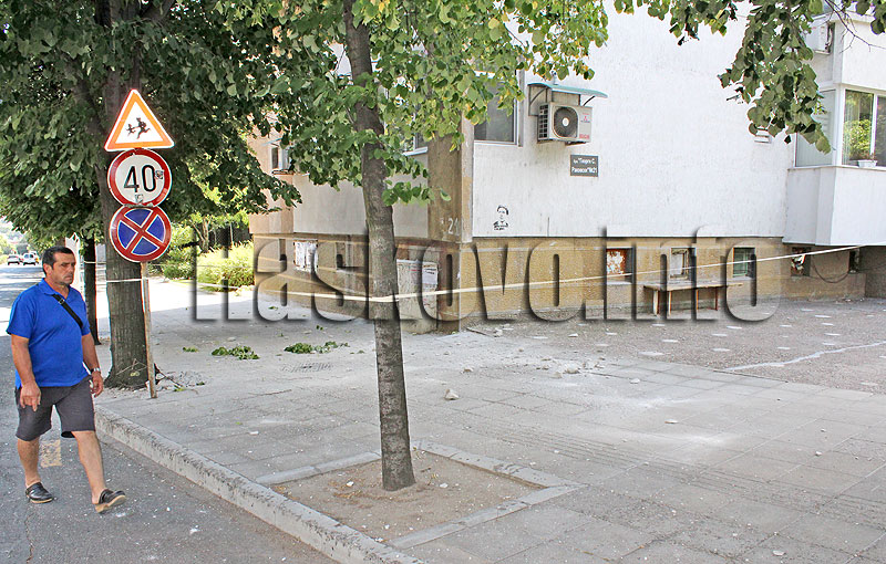 Големи парчета от мазилката на блок 21 на хасковския бул. „Раковски“ се срутиха в следобедните часове върху тротоара отдолу. За щастие в този момент там не са минавали хора.
