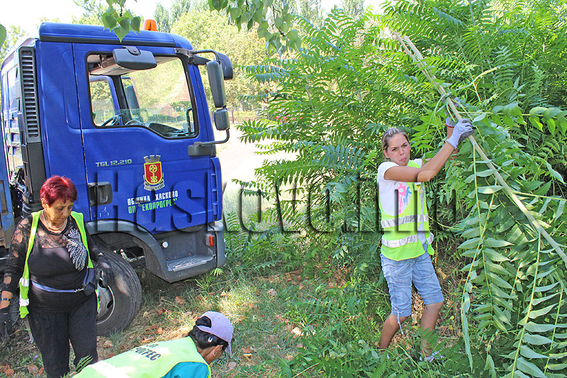 Те режат гъстата растителност, която е погълнала източната страна на стадиона и заплашва да го превърне в змиярник. Работниците заявиха пред Haskovo.info, че трябва да премахнат всички храсти и дървета.