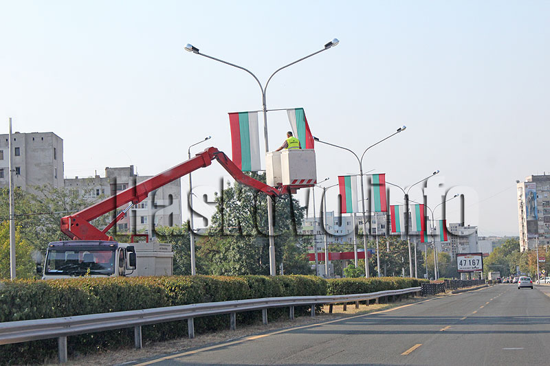 Украсяването на централните булеварди в Хасково със знамена за празника започна от снощи.