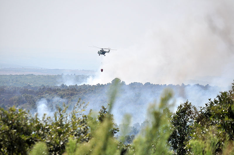 Голям пожар избухна край Хухла, извикаха хеликоптер
