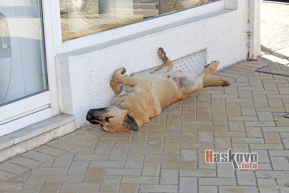 Бездомно куче се беше излегнало по гръб пред хасковския театър „Иван Димов“ и бе уловено в кадър от читател на Haskovo.info.