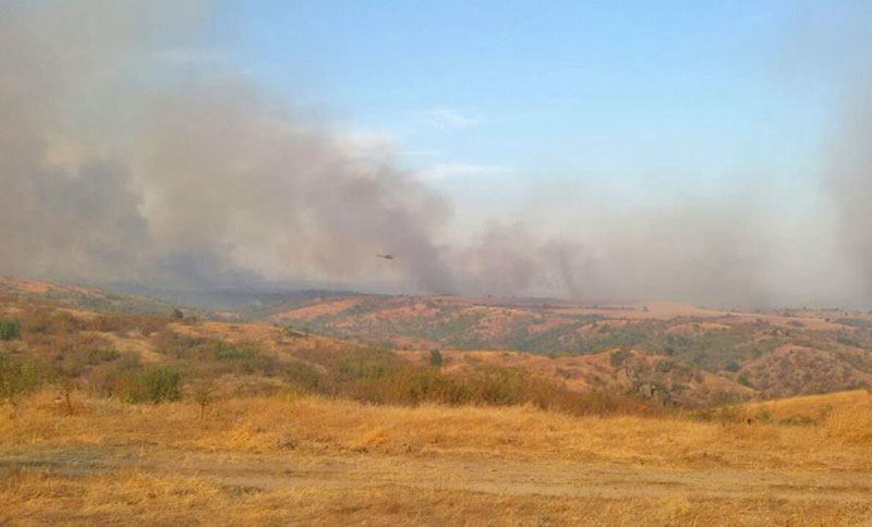 Огненото бедствие, в гасенето на което се включиха хеликоптер и 14 пожарни, изпепели над 8000 декара гора и сухи треви.
