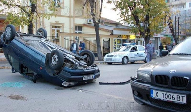 Предната дясна гума на Фиеста-та се е ударила в в предната дясната гума на Бавареца и се е преобърнал.