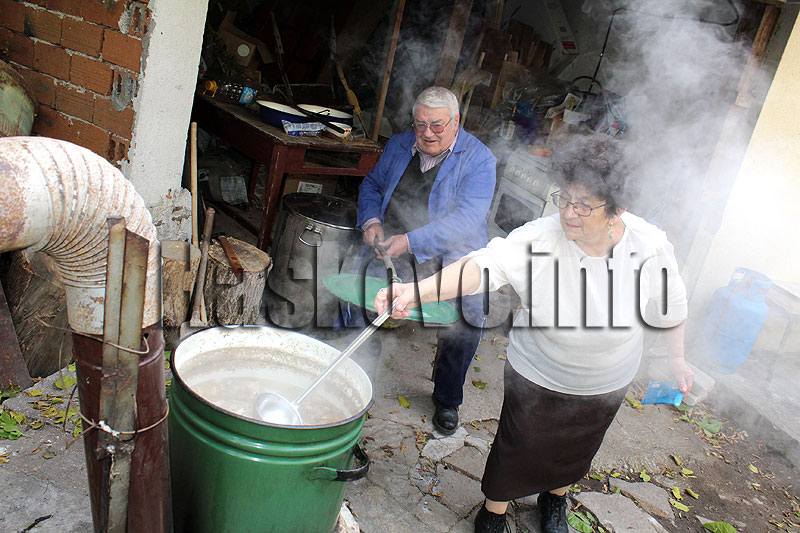 Приготвена са два казана с агнешко и тава дроб сърма, които ще се раздават за здраве на миряните, изпълващи от сутринта храма.