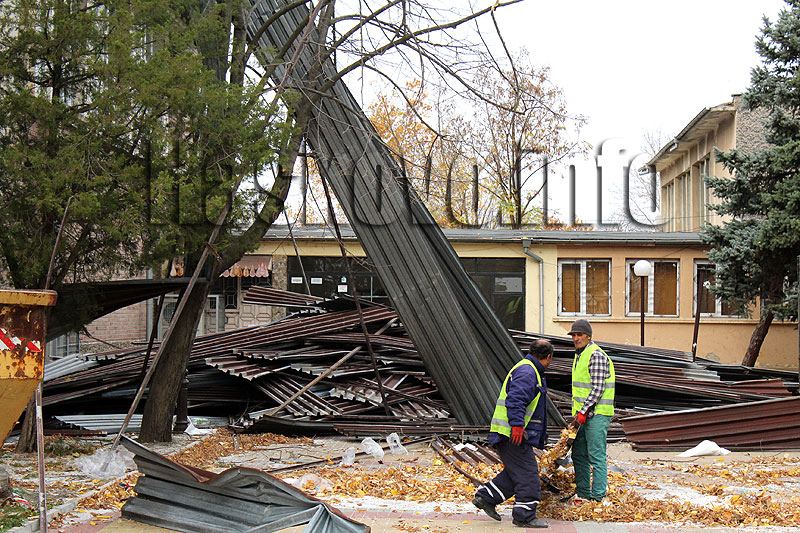 Haskovo.info припомня, че вчера поривите на вятъра достигнаха около 100 км/ч, при които бе отнесена и част от покрива на димитровградската спортна зала „Младост“.