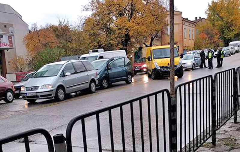 Преди кръстовището с „Илинден“ жълт фирмен бус удари Фолксваген, спрял на червен светофар, който пък се блъсна в изчакващия пред него лек автомобил от същата марка.
