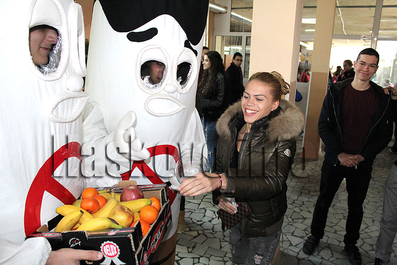 На голямото междучасие десетина младежи скъсаха по една цигара срещу което получиха плод. Други пък пишеха послания за здравословен начин на живот.