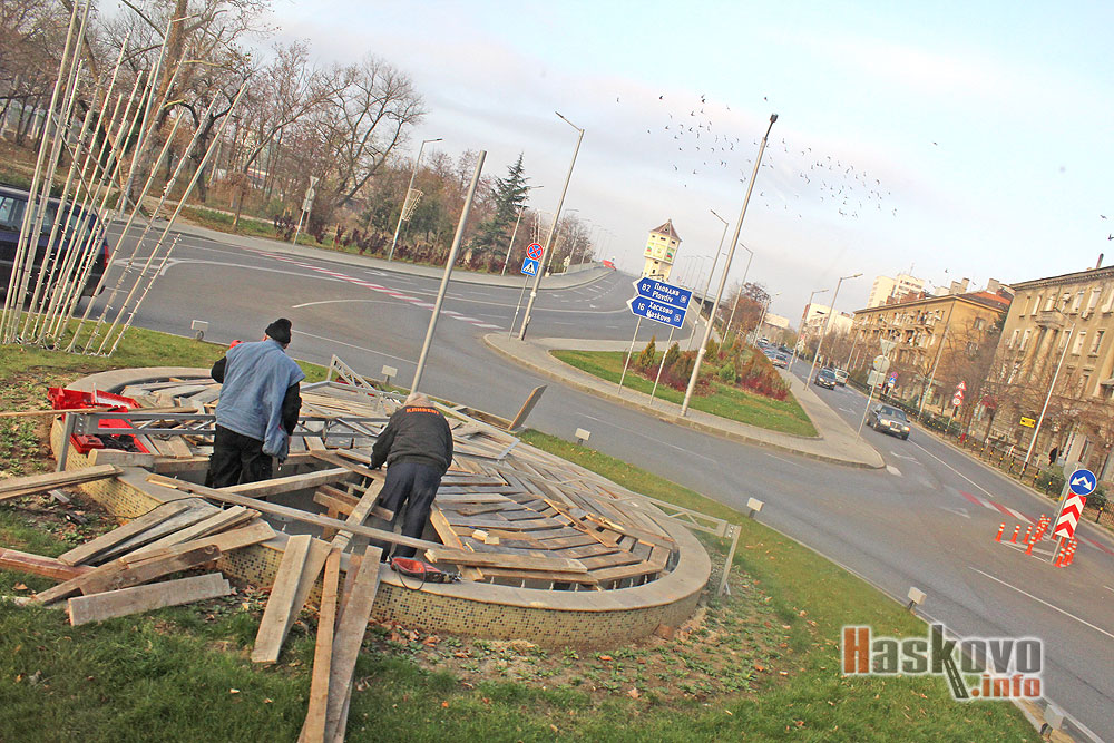 Работници започнаха зазимяването на фонтана до новата автогара в Димитровград.
