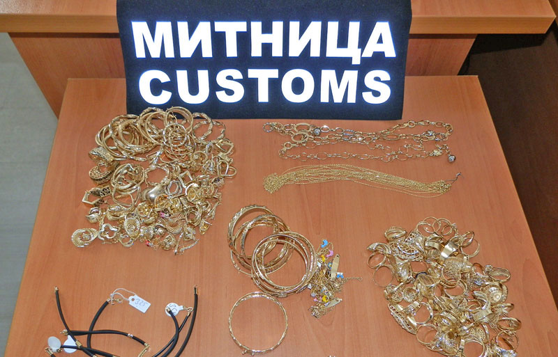 При личен преглед на една от пътничките, митническа служителка установила в сутиена на дамата необичайни подплънки, които се оказали найлонови пликове с общо 149 златни накита. Според направената от вещо лице експертиза накитите, 62 чифта обеци, 51 пръстена, 3 медальона, 17 гривни, 12 синджира и 4 силиконови гривни със злато, всички с общо тегло 533.54 грама, са от 14-каратово злато на стойност 32 012 лева.