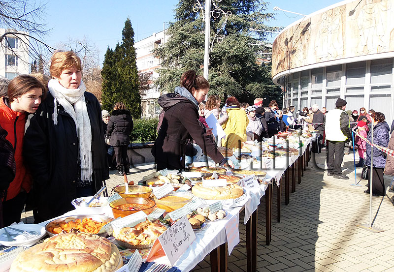 Дълга коледна трапеза бе отрупана с всевъзможни ястия на димитровградския площад „България“.