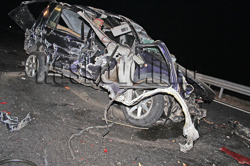 От зверския удар на място е починал мъж. Двама, пътували в колата са откарани в болница.