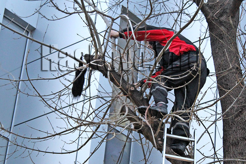Тази вечер на място пристигнаха огнеборците. Малко след тях дойде и техник от местна кабеларка. Преди пожарникарите да разпънат стълбата, техникът постави своята и започна да се изкачва към черната котка.