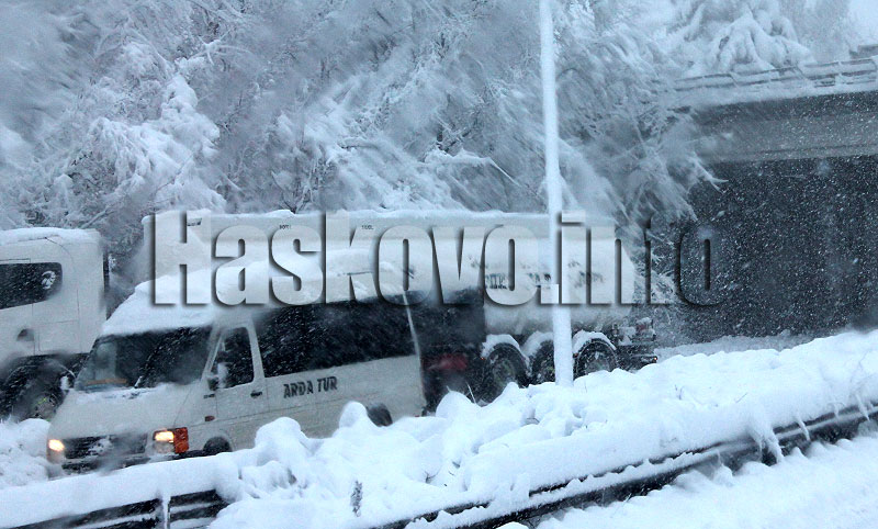 Причината за блокирането на автобусите е обърнат тир с летни гуми, за който Haskovo.info вече писа. Първите опити тежката машина да бъде изтеглена от пътното платно са се оказали неуспешни.