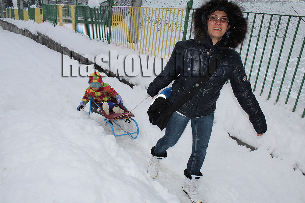 Тази вече хасковлийки взимаха децата си от градина с шейни, защото така се придвижват по-лесно.