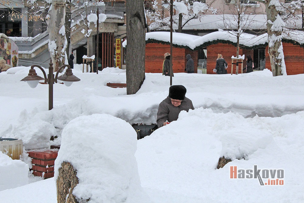 Хасковлийка е седнала и чете вестник на пейка сред преспите в центъра на областния град.