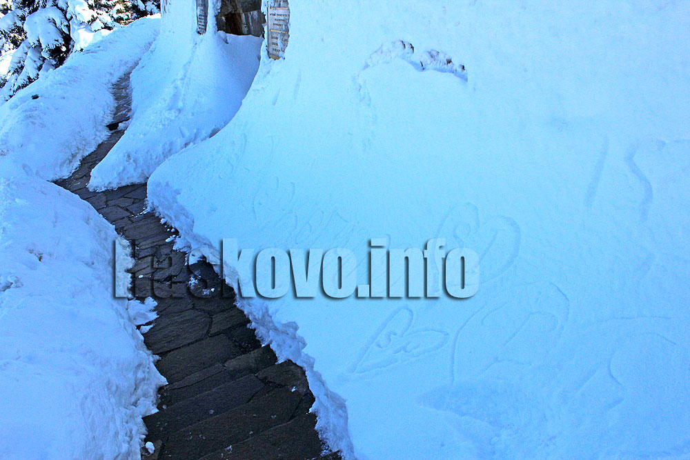 Веднага след спирането на снеговалежите, младежите които се разхождат в парка, карат шейни и сноуборди, засвидетелстват чувствата си и на снега.