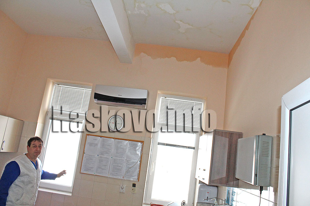 В повечето болнични стаи и лекарски кабинети таваните са мокри, а в някои вода вече капе на пода.