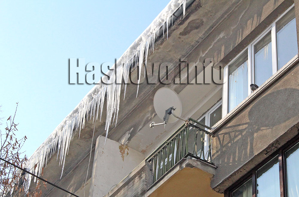 Опасни ледени висулки застрашават минувачите и в други части на Хасково.