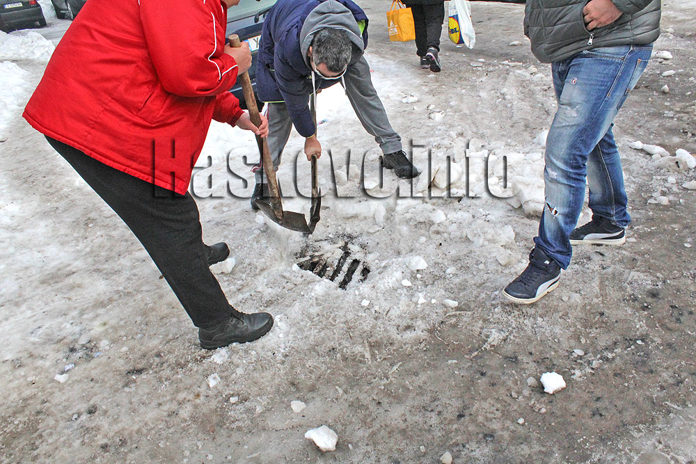 Със затоплянето на времето хасковлии започнаха сами да разчистват уличните шахти от леда за да не се наводнят.