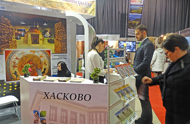 На изложението, по идея на директора на Туристически информационен център-Хасково Катя Гагова, община Хасково се яви на общ щанд с Ивайловград, Свиленград и Минерални бани.