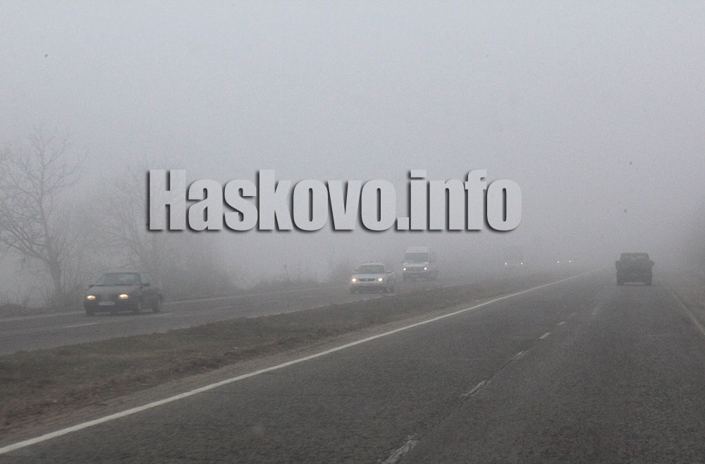 По пътя между Хасково и Димитровград на няколко места мъглата е много гъста.