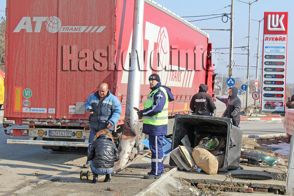 Тир „Рено“ и джип „Мицубиши“ катастрофираха на хасковския булевард „Съединение“ до бензиностанцията до изхода за Харманли.