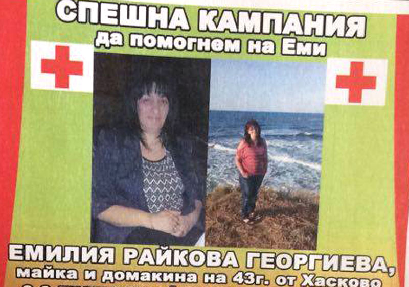 Както Haskovo.info писа, стартира спешна кампания в помощ на 43-годишната Емилия Георгиева от Хасково. Жената е с диагноза Аневризъм в мозъка. За да продължи да живее се нуждае от спешна операция, но сумата е непосилна за близките и семейството.