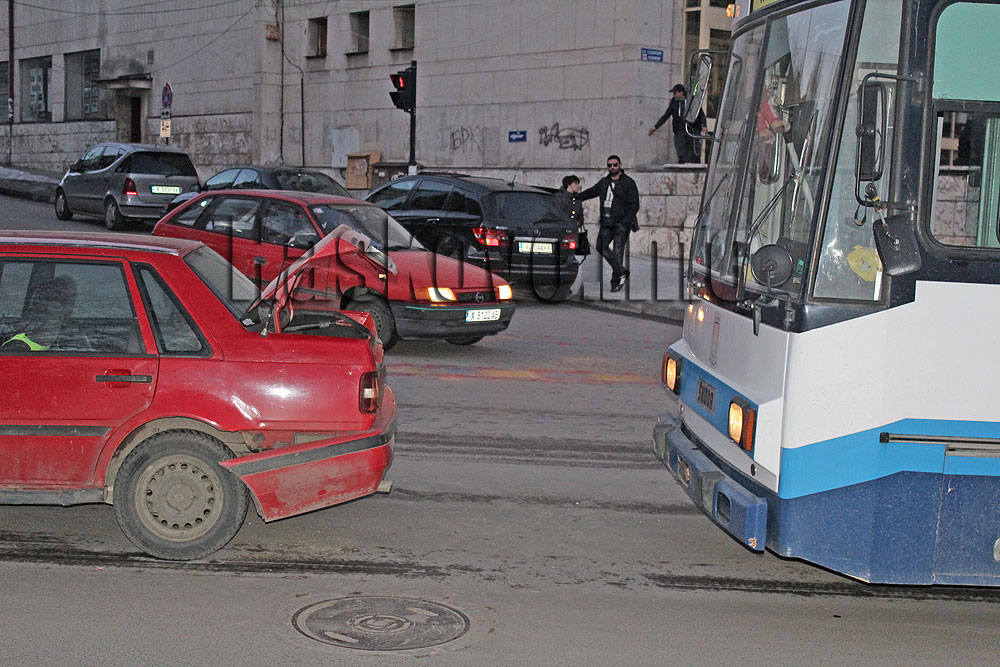 Тролей се блъсна във „Волво“ на кръстовището до ДНА
